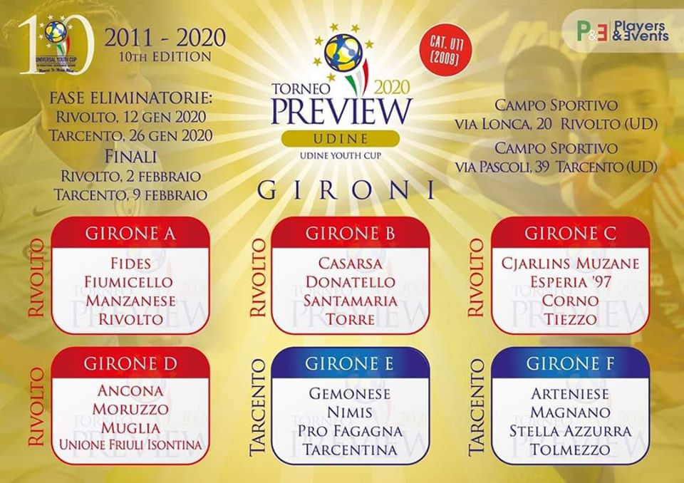 I piccoli campioncini rossoazzurri sono in campo a Tarcento dove sfideranno i pari grado di Arteniese, Magnano e Stella Azzurra, tutti inseriti nel girone F. In caso di primo posto ci sarà poi la contesa contro la vincente del girone E (Gemonese, Nimis, Pro Fagagna eTarcentina). Chi la spunterà andrà a raggiungere le squadre del Donatello Calcio Udine e del Rivolto calcio che hanno guadagnato domenica scorsa la qualificazione per le finalissime in programma domenica 9 febbraio presso il Campo Sportivo di Tarcento. In quell’occasione si decreterà la vincente regionale che  conquisterà l’acceso alla fase nazionale del Universal Youth Cup Torneo Internazionale Apuane in programma a Pasqua in Versilia.