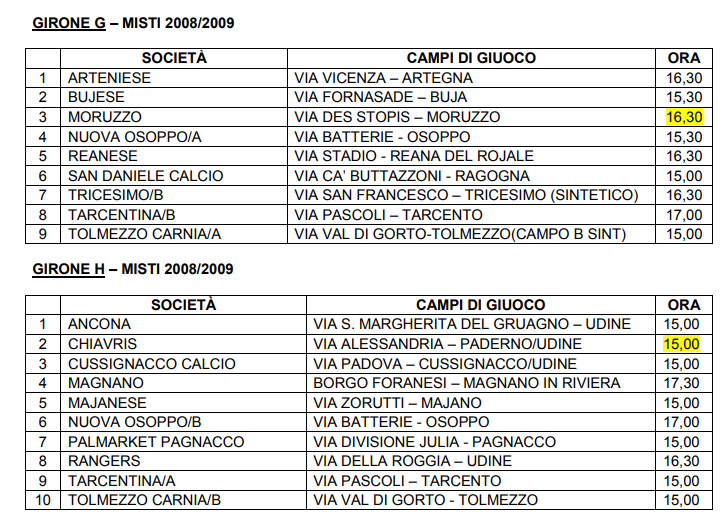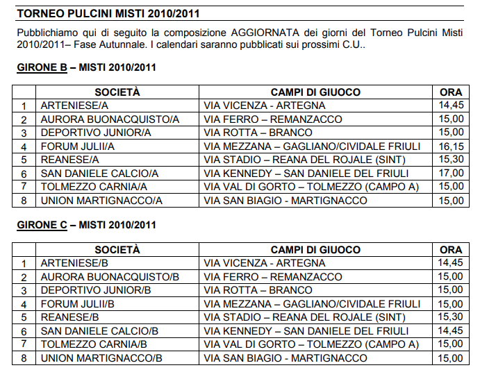 La delegazione provinciale di Udine della Lnd-Figc, in attesa di comunicare l’ufficialità della partenza della nuova stagione per il settore di base, ha reso noti i gironi provinciali nei quali sono state inserite le squadre degli Esordienti A e B e dei Pulcini A e B del Tolmezzo Carnia:
