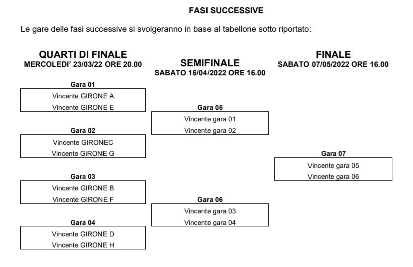 Il regolamento della competizione, intitolata ad “Alto Torul”, prevede il passaggio ai quarti di finale (marzo 2022) per la vincente di ogni girone (totale 8 squadre).