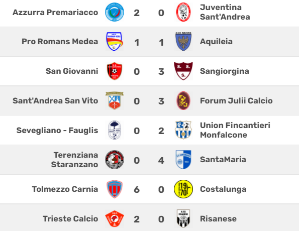 TOLMEZZO: D.Cristofoli, Tassotti (35′ st Nagostinis), Faleschini, Romanelli, Capellari, Persello, Madi, Fabris D. (1′ st Solari), Zancanaro (32′ st Maion), Gregorutti (34′ pt Cimenti), Nassivera Mar. (21′ st Zanier). A disp.: Beltrame, De Giudici, Rovere F.. All.: Mauro Serini.