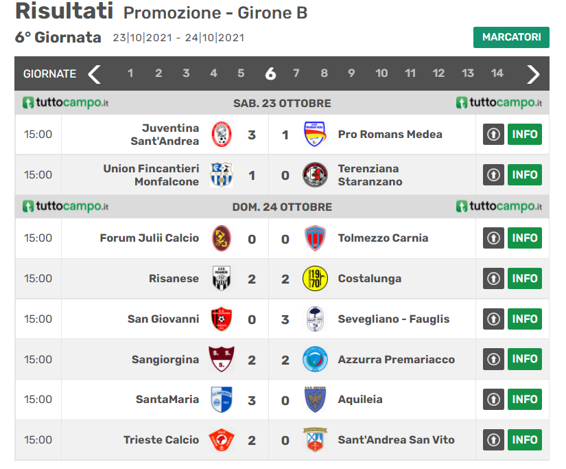 6^ GIORNATA CAMPIONATO PROMOZIONE GIR. B