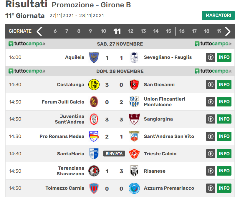 CAMPIONATO PROMOZIONE FVG GIR. B – 11^ GIORNATA
