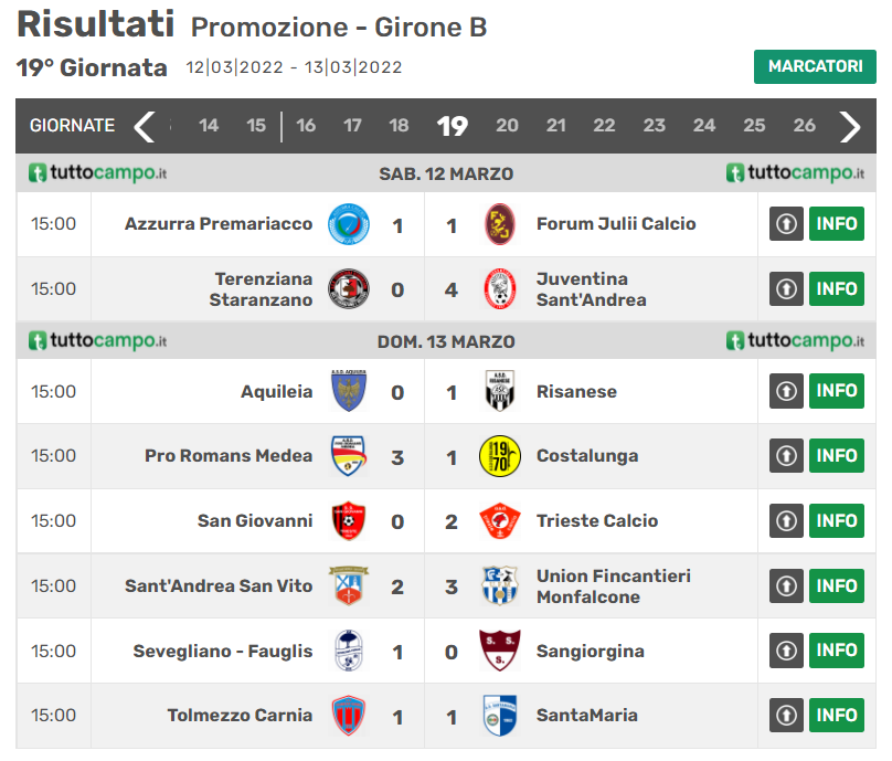 CAMPIONATO PROMOZIONE GIR. B – 19^ GIORNATA