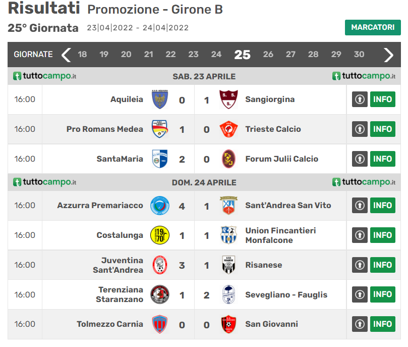 CAMPIONATO PROMOZIONE FVG GIR. B – 25^ GIORNATA