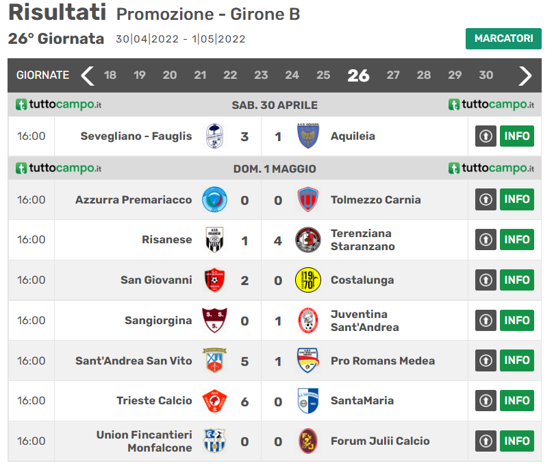 CAMPIONATO PROMOZIONE GIR. B – 26^ GIORNATA