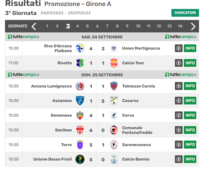 CAMPIONATO PROMOZIONE GIR. A – 3^ GIORNATA
