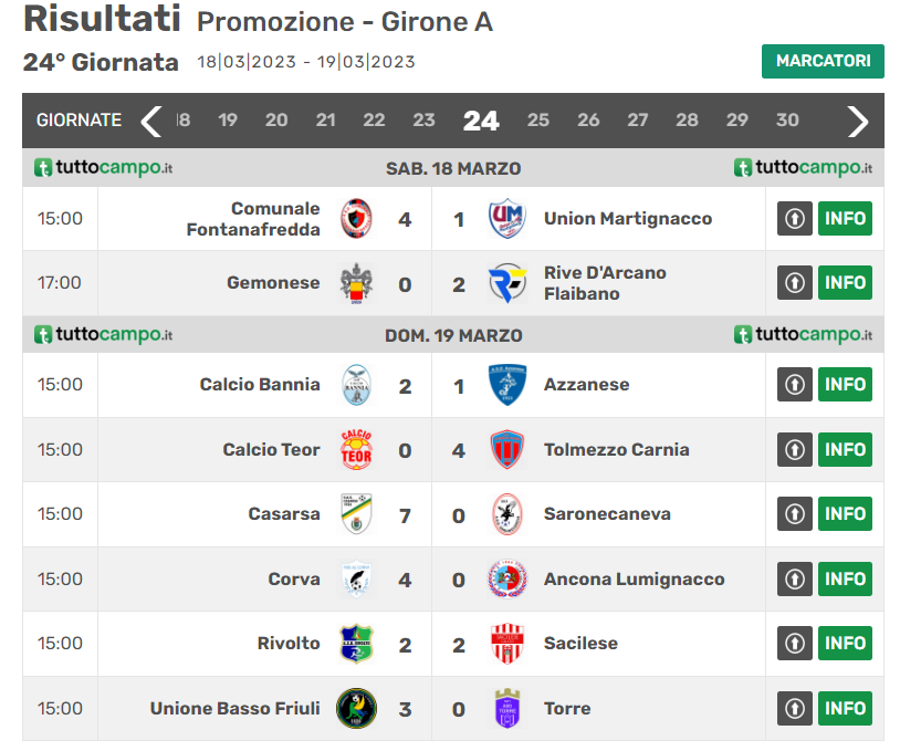 CAMPIONATO PROMOZIONE gir. A – 24^ GIORNATA