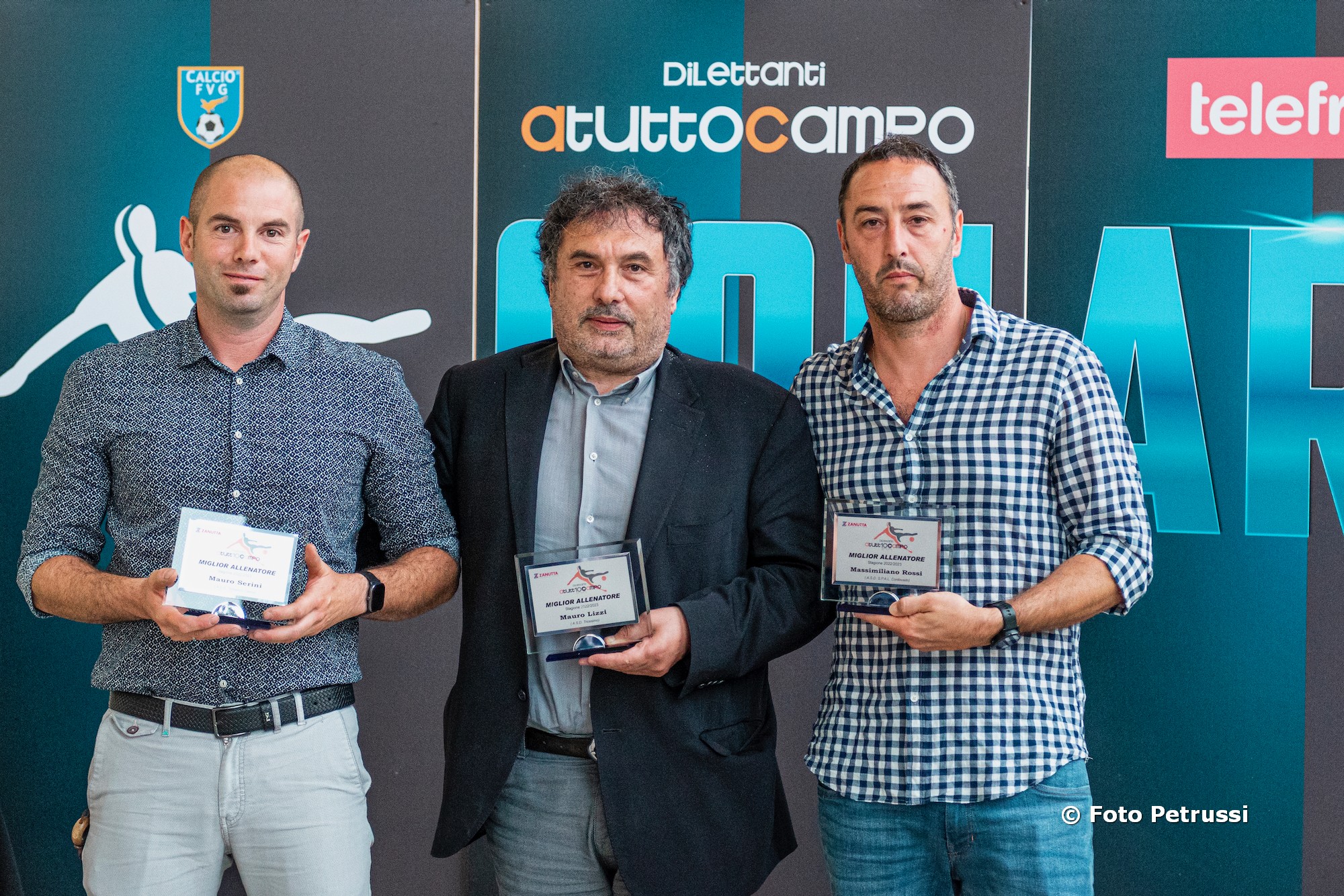 I tre migliori allenatori della stagione sono stati premiati ieri a Villa Manin. Mauro Lizzi, autore della miracolosa salvezza del Tricesimo. Massimiliano Rossi che ha portato la Spal Cordovado al terzo posto, continuando a mostrare bel gioco e facendo risultati anche quando è stato indebolito dal mercato. Mauro Serini che ha riportato il Tolmezzo in Eccellenza, scrivendo anche da allenatore un’altra bella pagina nella sua terra dopo essere stato giocatore e campione d’Italia Juniores.