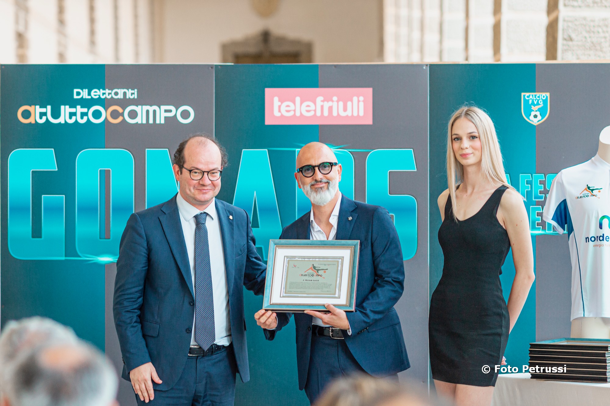 Nuovi riconoscimenti per il Tolmezzo Carnia conquistatore del Campionato di Promozione Fvg. Nella serata di martedì, a Villa Manin di Passariano di Codroipo, in occasione della presentazione della Festa dei Dilettanti promossa dalla trasmissione “A tutto Campo” di Massimo Radina, il presidente Michele Ianich e l’allenatore della Prima Squadra Mauro Serini, sono stati premiati per i risultati ottenuti dalla società in questa stagione 2022-2023. Oggi, venerdì 16 giugno, dalle ore 20.00 l’appuntamento con le sfide tra il Tolmezzo dei Record e le Top 11 di Eccellenza Fvg.