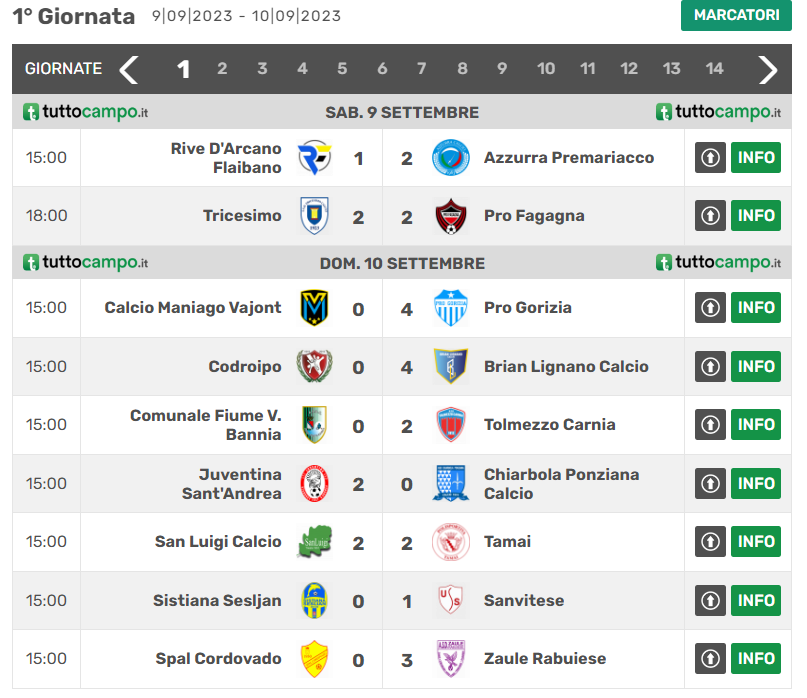 CAMPIONATO ECCELLENZA FVG – 1^ GIORNATA