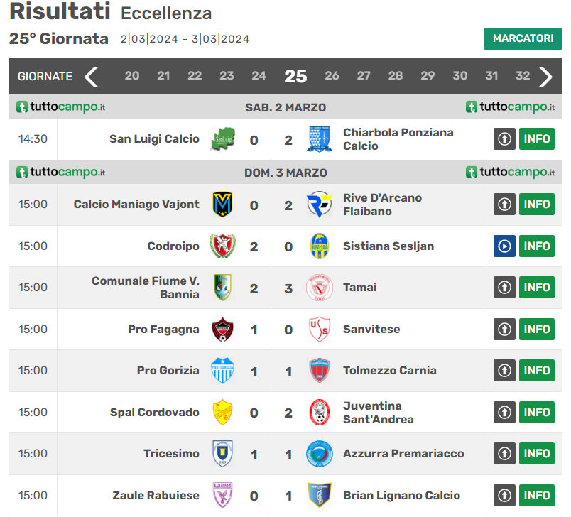 CAMPIONATO ECCELLENZA FVG – 25^ GIORNATA