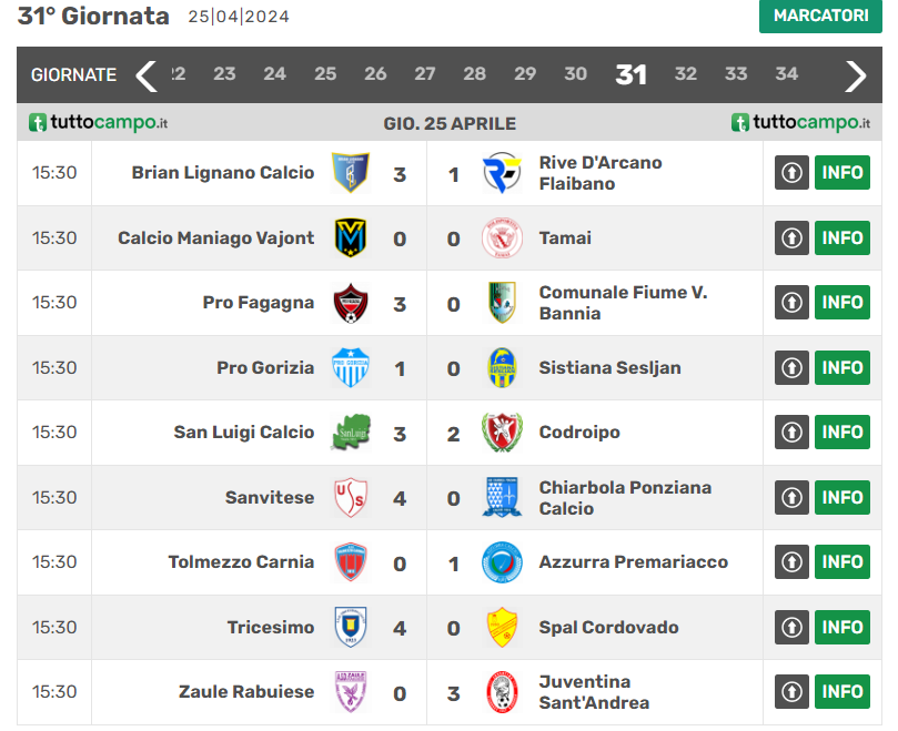 CAMPIONATO ECCELLENZA FVG – 31^ GIORNATA