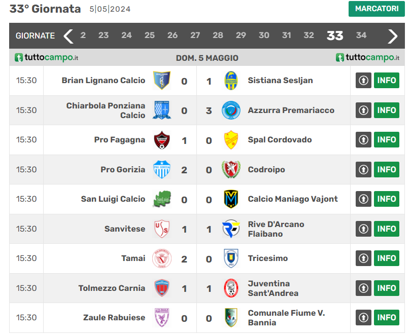CAMPIONATO ECCELLENZA FVG – 33^ GIORNATA
