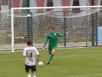 La squadra di Radina parte con coraggio, senza timori reverenziali. Nei primi minuti i carnici spingono forte: al 10’ la punizione di Gabriele Faleschini è deviata in angolo, poco dopo Crevatin ci prova con il sinistro, ma trova ancora una deviazione. Al quarto d’ora lo stesso Faleschini insiste con un altro mancino insidioso, mentre al 24’ è Nagostinis a costringere Chiavon al salvataggio in corner. L’occasione più nitida del primo tempo capita sui piedi di Buzzi nei minuti di recupero, ma la sua conclusione da buona posizione termina alta. Le squadre vanno così al riposo sullo 0-0, con un Tolmezzo padrone del campo e un Muggia incapace di pungere e il bomber Ciriello che viene puntualmente ingabbiato dai difensori carnici.