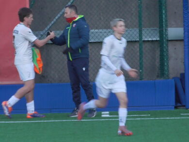 È un vero e proprio monologo dei padroni di casa: al 25’ Motta, imbeccato da Sicco, calcia a fil di palo. Il Fontanafredda prova a spezzare il ritmo e al 28’ Stiso conclude largo. Nel finale entrambe le squadre hanno l’occasione per sbloccarla: prima Nagostinis non riesce a trovare la giocata vincente sotto porta, poi sul fronte opposto Bianco manda di poco fuori da buona posizione. Radina fa esordire un altro frutto del vivaio tolmezzino, Gianluca Cimador (2007), a cui poi segue anche il bis di Mattia Buzzi (2009 già provato contro la Forum Julii. Passano i quattro minuti di recupero ma il risultato non cambia.