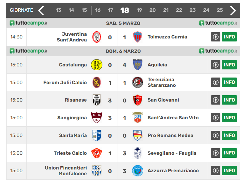 JUVENTINA: Gregoris, Trevisan, Celcer, Racca (1′ st Russian), Marini, Cerne, Hoti, Cuca (25′ st Cocolet), Selva, Kerpan (38′ st Tomat), Piscopo (28′ st Zejnuni). A disp.: Piazze, Vittorelli, Popovic , Del Zotto, De Cecco. All.: Nicola Sepulcri.