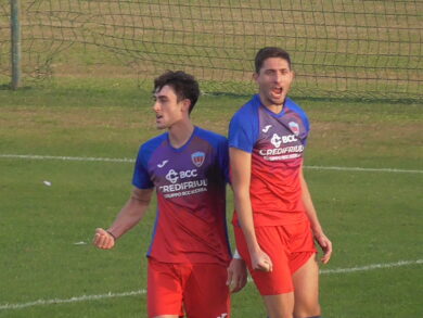 Al 24’ arriva il sorpasso Tolmezzo: Osso, subentrato a Sabidussi, pennella in area per Nagostinis, che in mezza girata sigla il 3-2 e la sua doppietta personale. La gioia dura poco: contropiede locale innescato sulla fascia destra, Cristofoli esce per anticipare l’attaccante ma non con i tempi giusti, quindi Cucchiaro in area ci prova a mettere una pezza ma arriva il fallo da rigore su Lirussi che vale il 3-3, trasformato da Stiso, con le proteste dei carnici per un possibile tocco di mano dell’attaccante di casa nell’atto di superare Cristofoli.