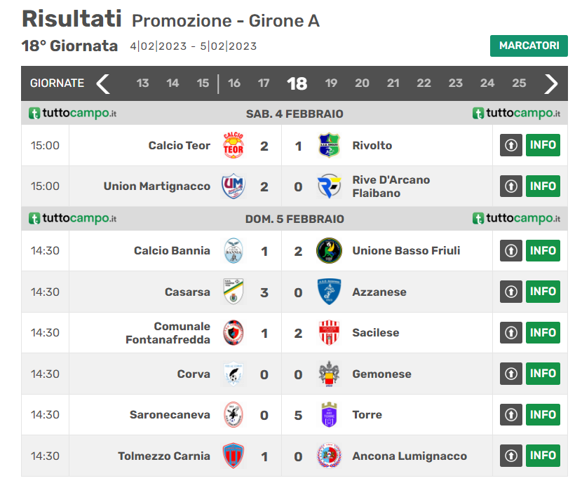 Il Tolmezzo si rivede in attacco al 30′ quando con un rilancio dalla metà campo carnica, complice sempre il vento, Motta prova a sorprendere Stanivuk in uscita; Gregorutti riprende la sfera e calcia a rete ma Berthe di testa allontana. Ultimo boato in pieno recupero con Sabidussi che, al termine di un’azione di rimessa, sfiora la traversa.
